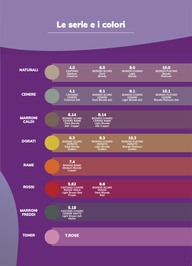 La miscela si prepara in rapporto 1:1 con ossidante specifico viola a 5 volumi o 25 volumi. La texture in olio-gel è studiata per garantire adesione alla fibra ed evitare colature durante l'applicazione.